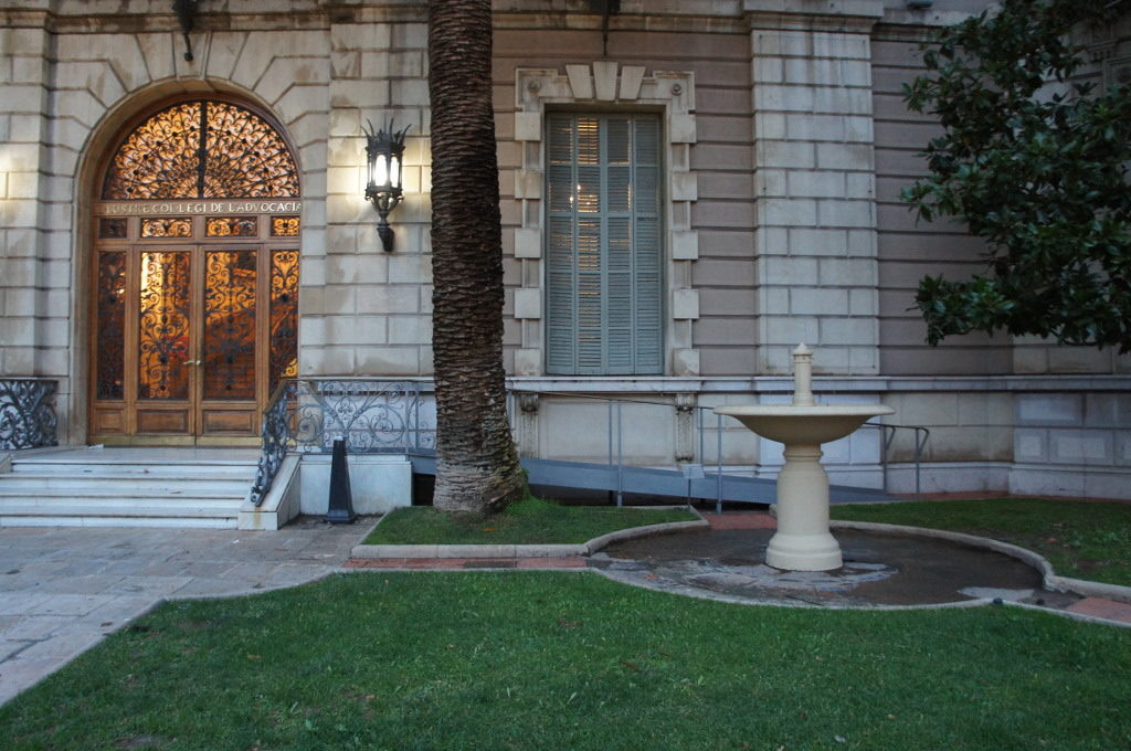 Continuem pel carrer Roger de Llúria per la vorera esquerra, i passada la delegació del Gobierno a Catalunya, a la cruïlla amb el carrer de Mallorca ens reben els brolladors bessons de la façana del Palauet, ara seu del Col·legi d’Advocats de Barcelona.