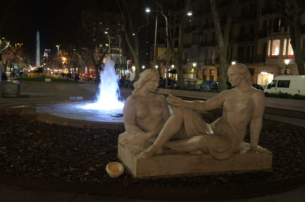 Ja que estem a la Diagonal, just a la Cruïlla amb el Passeig de Gràcia, podem creuar l’avinguda i reposar uns instants als Jardinets de Gràcia, nom popular dels Jardins de Salvador Espriu. Dissenyats el 1929 per Nicolau Maria Rubió i Tuduri. Aquí ens amanyagarà, enmig del trànsit constant, els sons d’un brollador circular. Davant mateix s’ha col·locat l’escultura l’Empordà, nova oda a Barcelona d’Ernest Maragall i Nobel, obra de 1961 i dedicada a Joan Maragall, pare de l’escultor.