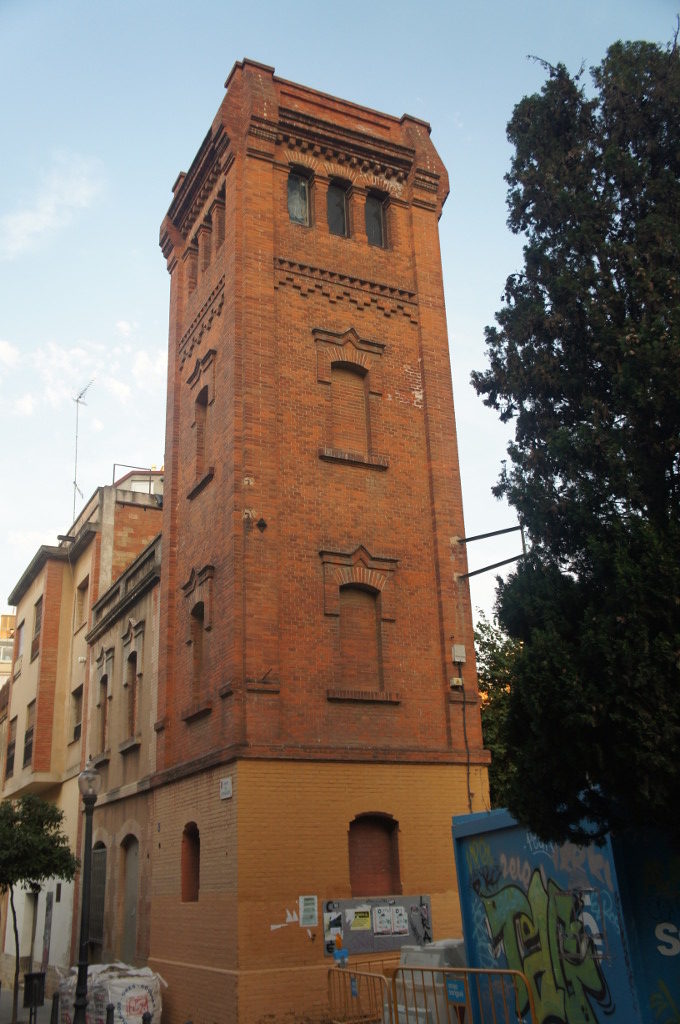 Tant voltar per Barcelona i se m’havia oblidat un dels elements arquitectònics que tinc a tocar de casa. Només cal creuar l’Avinguda de la Meridiana i, baixant per la Rambla de Fabra i Puig, a la cantonada amb el carrer del Llenguadoc, se’ns presenta la imponent imatge d’una de les torres de la font de Canyelles.