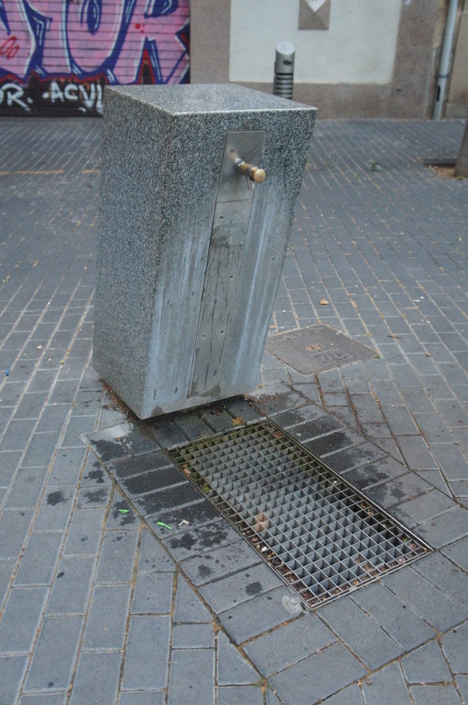 Aquí trobarem una font, de disseny modern, en forma de paral·lelepípede, de granit, i amb un sola aixeta.