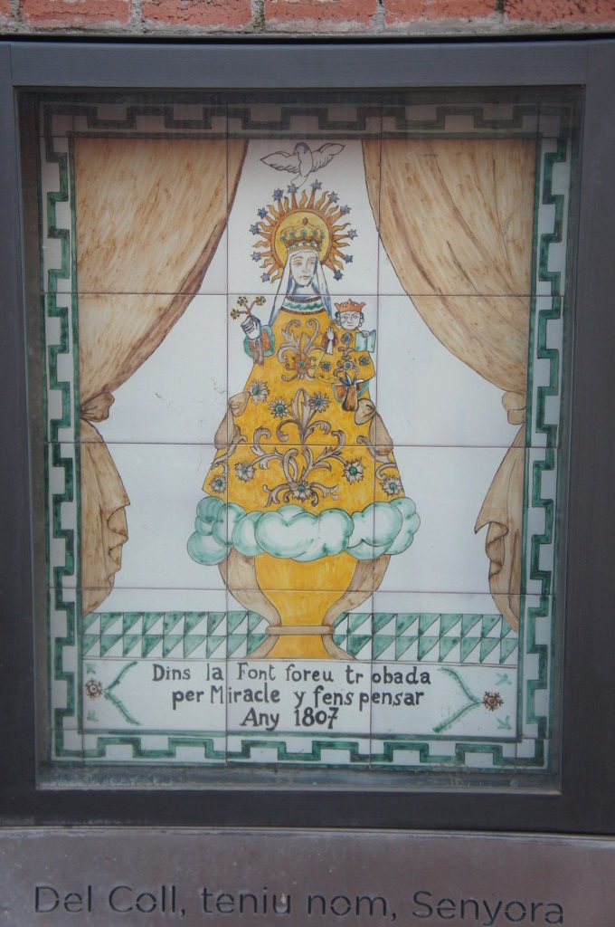 Es tracta d’una font d’una sola aixeta, amb la imatge de la Mare de Deu del Coll en rajoles de ceràmica.