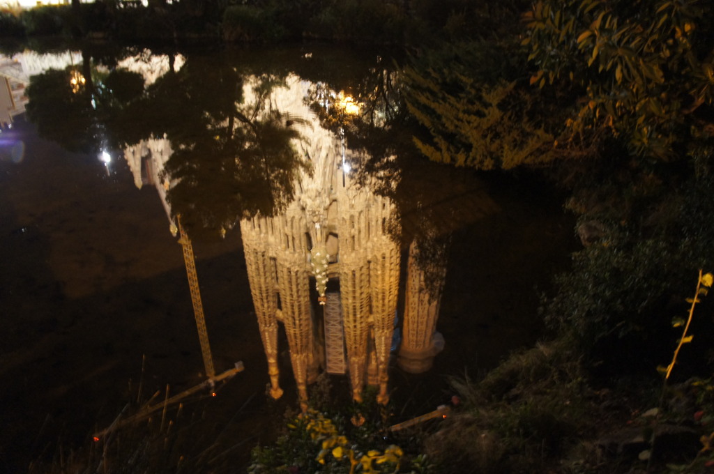 Aquí recomano anar-hi de nit. Just davant de la façana del Naixement de la Sagrada Família, a la plaça dedicada a Antoni Gaudí, trobem uns jardins dissenyats per l’arquitecte Nicolau Maria Rubió Tudurí. Inaugurats el Setembre de 1981, quatre mesos després de la mort del arquitecte, el punt central és un estany que reflecteix la façana.