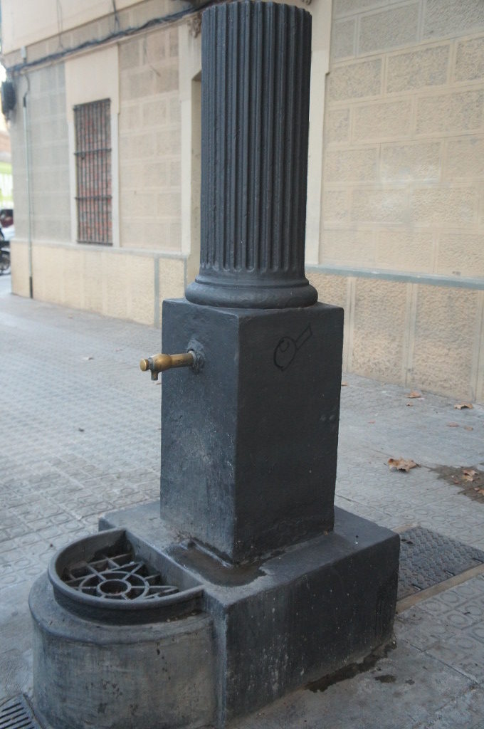 Nomes hem de baixar un parell de carrers i trobarem el dedicat al Doctor Trueta, el seguim una mica i de-seguida a la cruïlla amb el carrer de Badajoz ens espera aquesta font de columna. D’una sola aixeta, destaca la columna dòrica retallada al damunt.