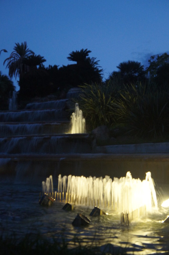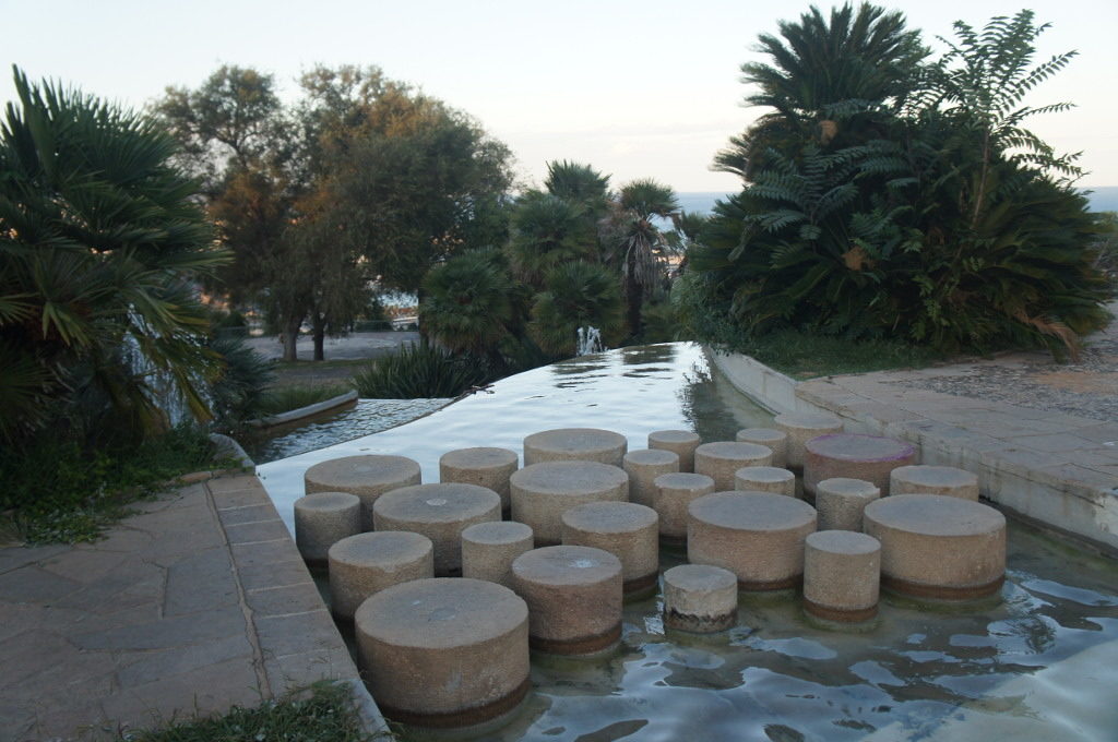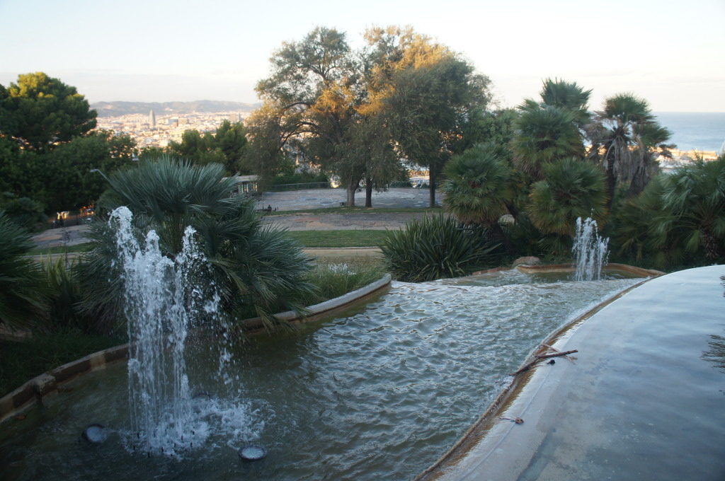 Ara ens enfilarem en direcció al Castell de Montjuïc per l’altra banda, per fer-ho, des de l’Avinguda de Miramar, agafarem la carretera de Montjuïc, i a ma dreta, trobarem el monument a la Sardana de Josep Cañas i a ma esquerra els jardins del Mirador. Inaugurats el 1969, el terra, és obra de Joan Josep Tharrats. Aqui hi ha una font dissenyada pel mateix Carles Buïgas.